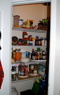 So I started off by taking everything out of the pantry.... about midway thru I ran out of counter space! I also threw away alot of stuff. We had 3 jars of pickles that were expired that have been hanging out way in the back for over a year! Yeah - it was a mess!